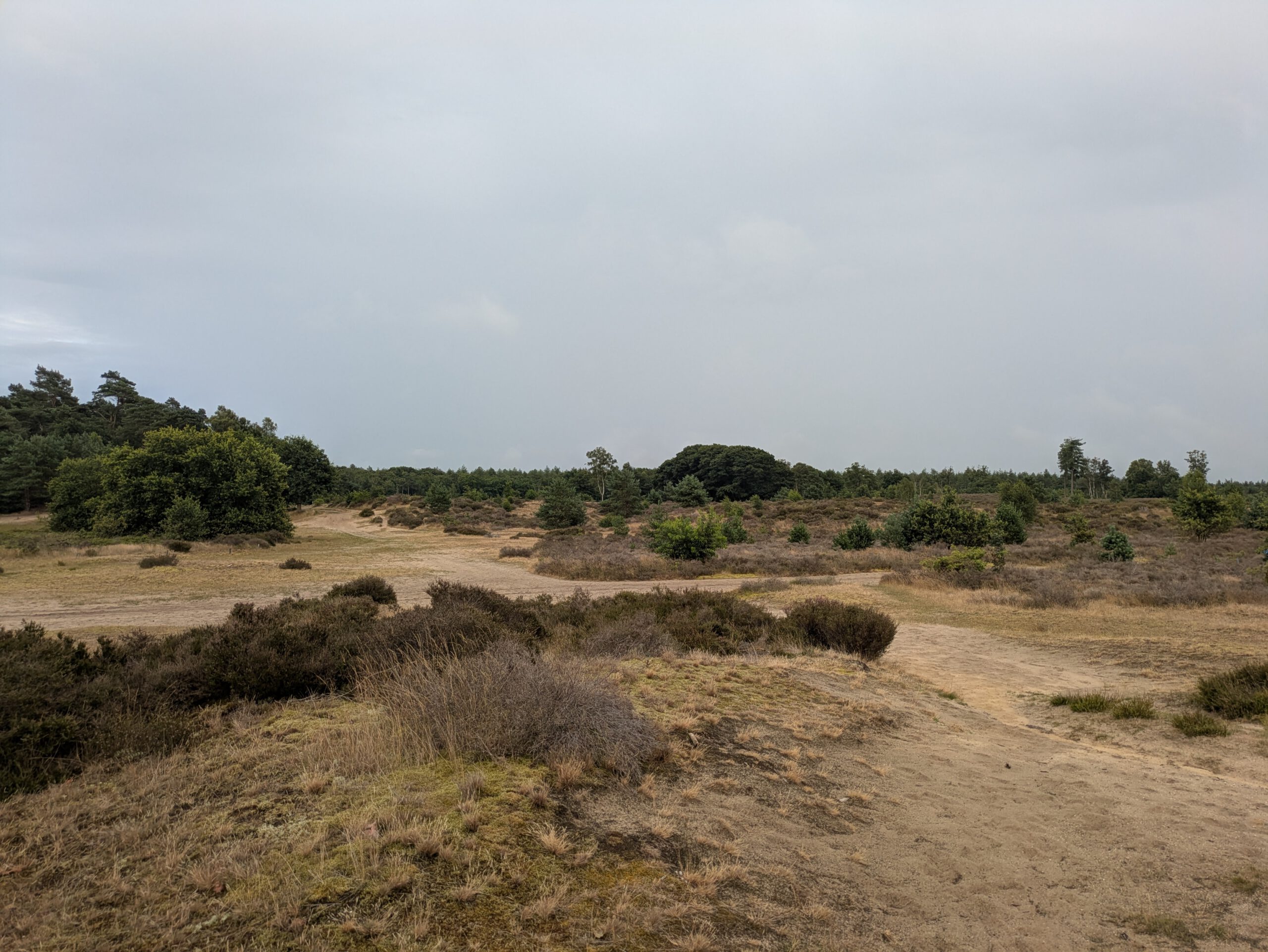 “Mijn schoenen slijten hier niet, het is geweldig.” “Ik loop eigenlijk nauwelijks nog op de weg!” Ik geloof het graag. Ik ploeg naast B door het zand van de Utrechtse Heuvelrug. We hebben elkaar al zeker een half jaar niet gezien, maar nu we eindelijk weer eens samen lopen is het alsof het halve jaar niet heeft bestaan. We pakken oude gesprekken op alsof het gisteren was. Ik ben aan het ploeteren, neem te grote stappen door het zachte zand. B draait zich om: “Vergeet je niet om je heen te kijken? Man, kijk toch eens waar we lopen!” Hij glundert.